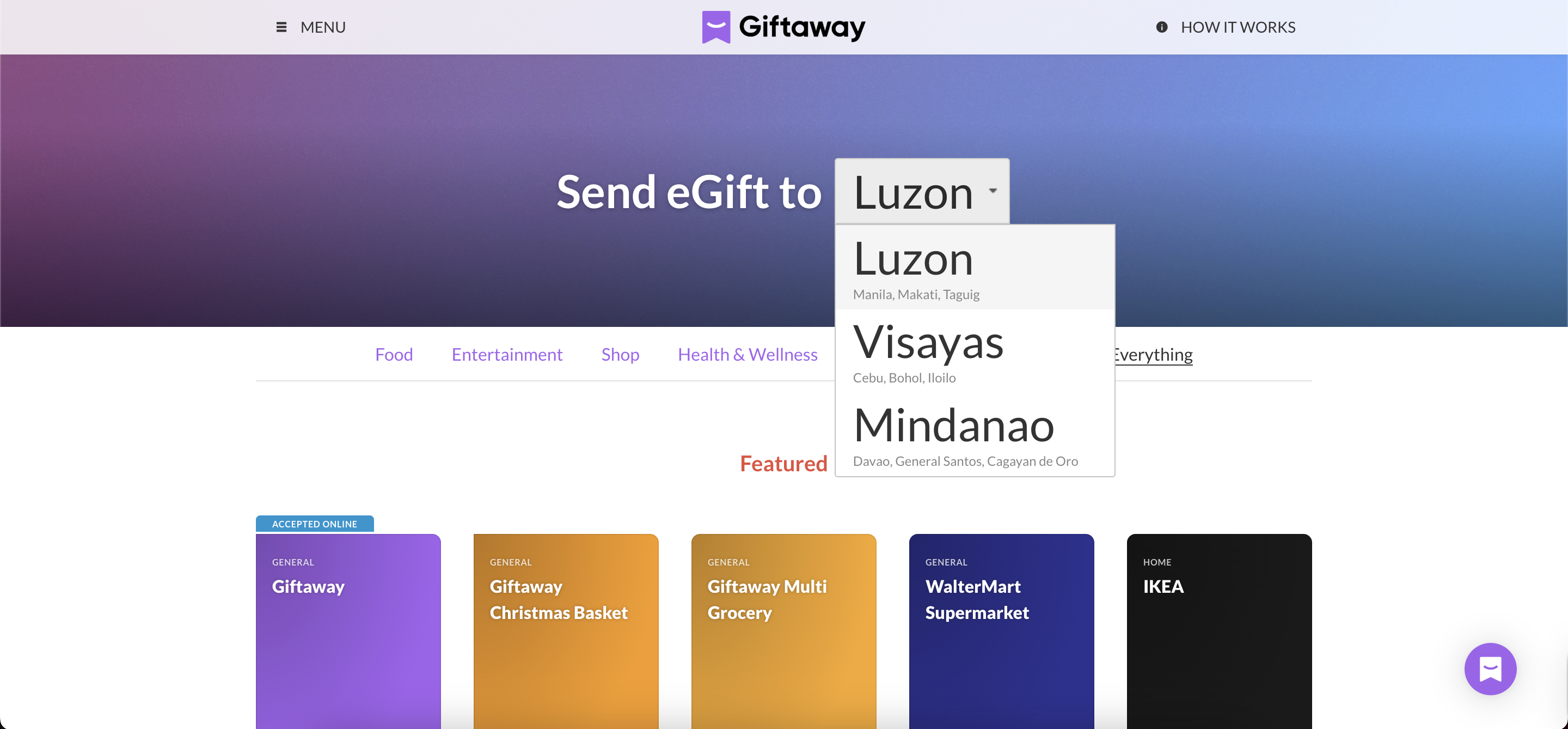 The Luzon, Visayas, and Mindanao selections serve as handy filters, helping you identify the perfect brands for your eGift recipient. These filters are tailored to enhance your browsing experience, ensuring you find the ideal match effortlessly.