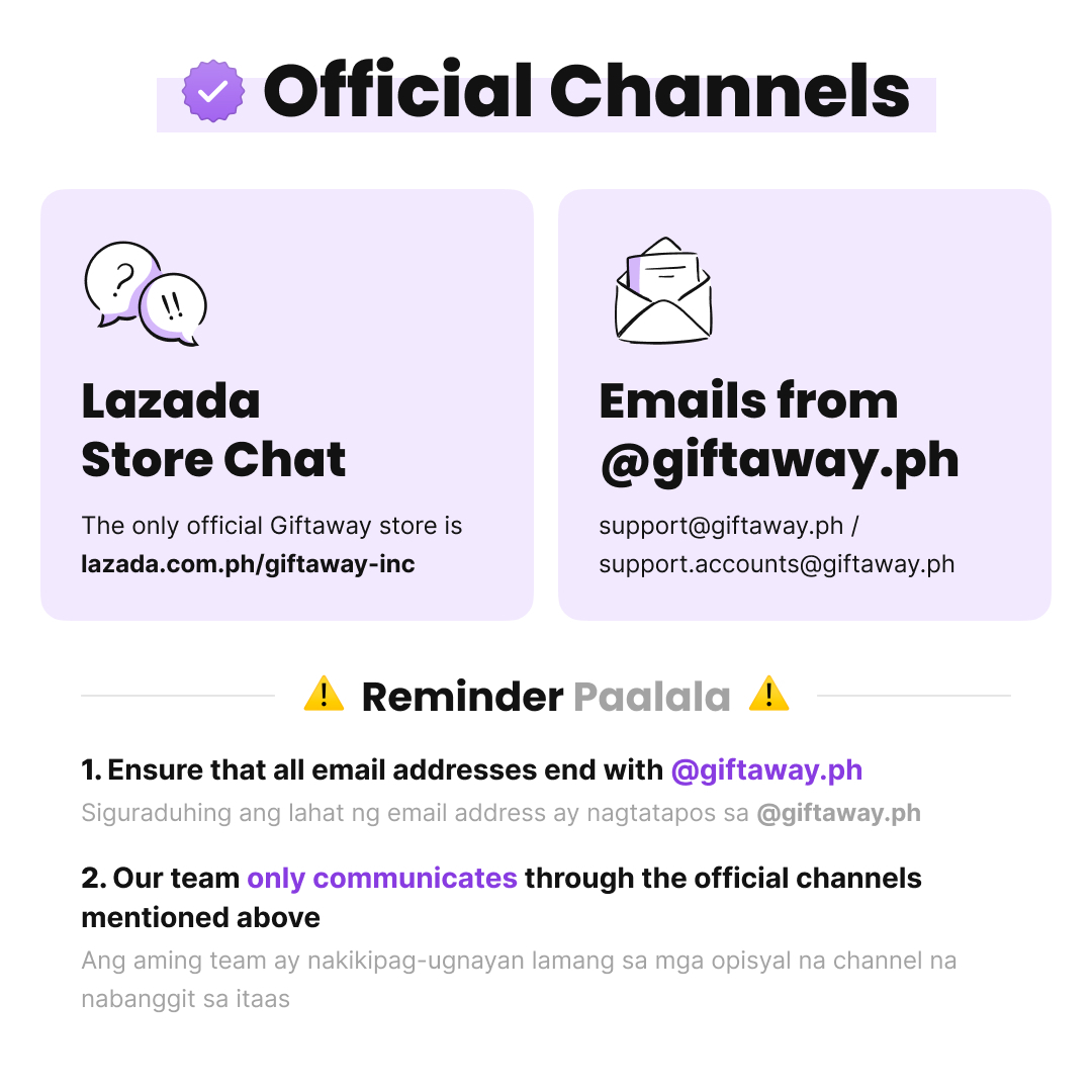 Important reminder: Please make sure that the registered email address in your Lazada account is updated. Additionally, please refer to our Official Channels below to ensure that your transactions are secured.